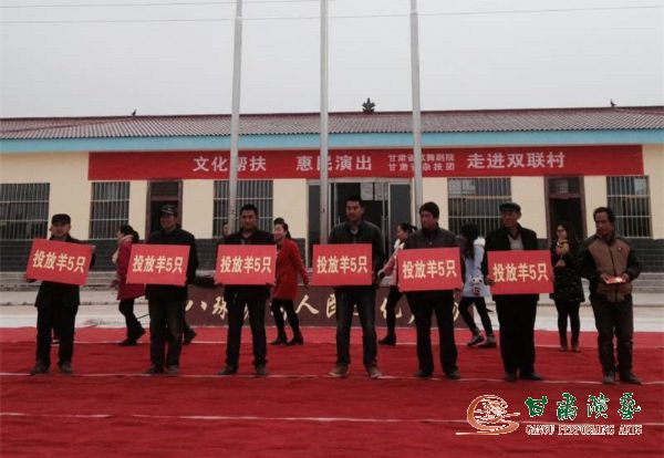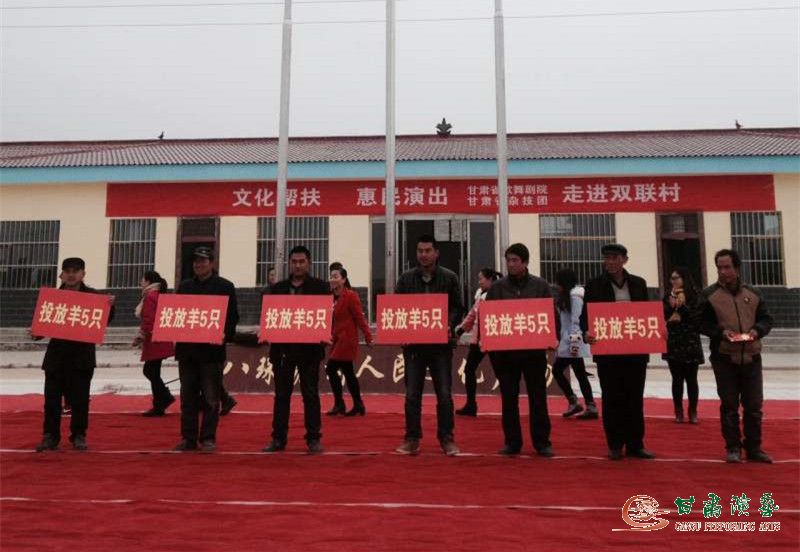 2015年11月4日,甘肅省歌舞劇院院長陸金龍和甘肅省雜技團團長李林安帶領慰問演出團,來到甘肅省慶陽市環(huán)縣八珠鄉(xiāng)進行雙聯(lián)扶貧慰問,不僅為當?shù)馗咐相l(xiāng)親投放了羊,而且還在新建的文化廣場上,為他們演出了精彩紛呈的文藝節(jié)目。雖然天寒地凍,但現(xiàn)場觀眾的掌聲和歡呼聲不斷,慰問演出氣氛一直高潮迭起。