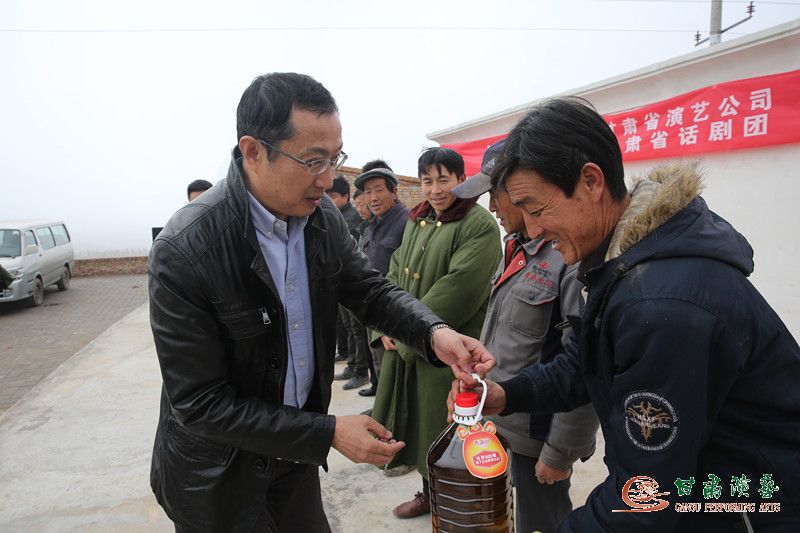 之后,甘肅省話劇院在白塬村新建的文化廣場上給父老鄉(xiāng)親送上了一臺“文化盛宴”,祝賀文化廣場的落成。演出在一曲《最炫民族風》中拉開帷幕,抑揚頓挫、滿懷深情的詩歌朗誦,余音繚繞、回味無窮的器樂演奏以及精心編排的以“倡廉反腐”為主題的小品等,深深地吸引了鄉(xiāng)親們的目光,撥動著他們激蕩的心。盡管室外溫度已是零下,但并沒有影響父老鄉(xiāng)親觀看節(jié)目的熱情,他們一次次地歡呼雀躍,將幾個小時的演出不斷推向高潮。為了籌備此次演出,省話劇院的演藝人員,傾注了大量的心血,付出了艱辛的勞動,他們用一臺組織簡便,有感染力,質(zhì)量較高的節(jié)目,把點點滴滴的關愛灑進了每一位白塬村父老鄉(xiāng)親的心中,把宣傳黨的富民政策融入到文藝節(jié)目之中,展現(xiàn)了演藝集團干部在雙聯(lián)慰問行動中奮發(fā)有為、昂揚向上的精神風貌,達到了“文化下鄉(xiāng)、情暖百姓、服務社會、心聲交融”的目的。演出期間,胡總和話劇院院長朱衡還為當?shù)?0多戶雙聯(lián)戶親手送上了面粉和食用油等慰問品。