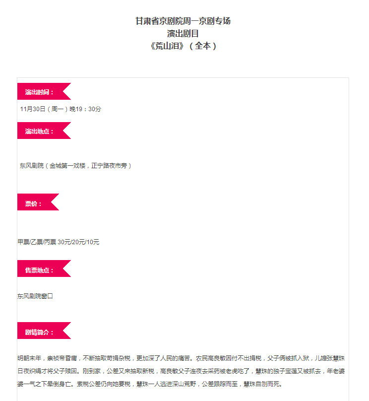 甘肅省京劇院《荒山淚》全本演出預(yù)告