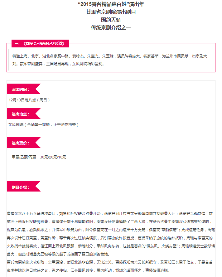 甘肅演藝集團(tuán)“2015舞臺(tái)精品惠百姓演出年”京劇演出季劇目《群英會(huì)》正在排練中
