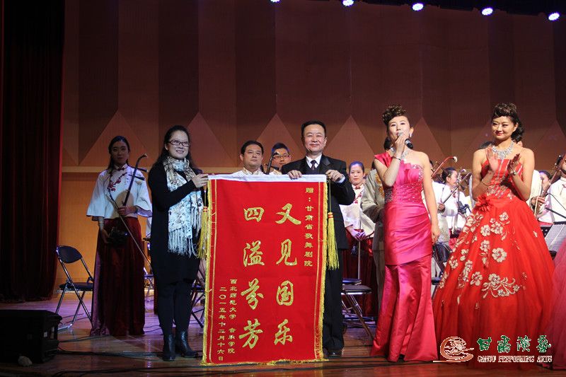 17日下午3點(diǎn),西北師范大學(xué)音樂廳同樣氣氛熱烈浪漫,師生云集,一次次用他們無(wú)比贊許的目光和繞耳不絕的掌聲表達(dá)著對(duì)音樂會(huì)的由衷感懷。特別是音樂會(huì)落幕時(shí),該校音樂學(xué)院副院長(zhǎng)陳建紅女士上臺(tái)為省歌舞劇院贈(zèng)送錦旗“又見國(guó)樂,四溢芬芳”的溫暖一幕,成為本次音樂會(huì)最鼓舞人心的鮮活獎(jiǎng)?wù)隆?