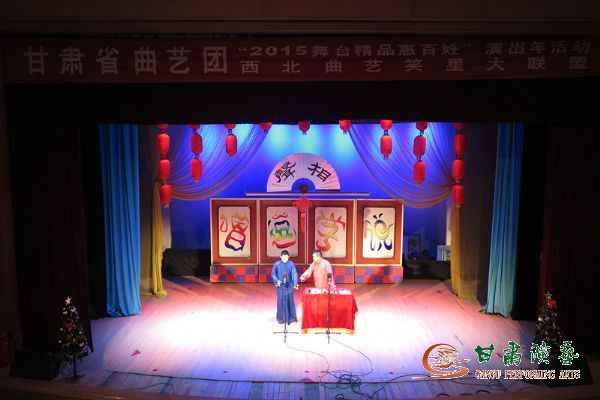 2015年12月29日、30日,由中共甘肅省委宣傳部、甘肅省財(cái)政廳、甘肅省文化廳主辦;甘肅演藝集團(tuán)承辦;甘肅日?qǐng)?bào)社、甘肅廣播電影電視總臺(tái)協(xié)辦的隆重紀(jì)念抗戰(zhàn)勝利70周年暨“2015舞臺(tái)精品惠百姓”演出年活動(dòng),甘肅省曲藝團(tuán)“快樂(lè)蘭州·笑滿(mǎn)金城”中國(guó)傳統(tǒng)曲藝相聲專(zhuān)場(chǎng)演出在“快樂(lè)蘭州·笑滿(mǎn)金城”曲藝相聲小劇場(chǎng)落下了帷幕。經(jīng)過(guò)最后2場(chǎng)精彩的傳統(tǒng)相聲專(zhuān)場(chǎng)演出,至此,從11月11日開(kāi)始,到12月30日為止,甘肅省曲藝團(tuán)“2015舞臺(tái)精品惠百姓”演出年活動(dòng)“快樂(lè)蘭州·笑滿(mǎn)金城”西北曲藝笑星大聯(lián)盟專(zhuān)場(chǎng)演出和中國(guó)傳統(tǒng)相聲專(zhuān)場(chǎng)演出全部圓滿(mǎn)結(jié)束。