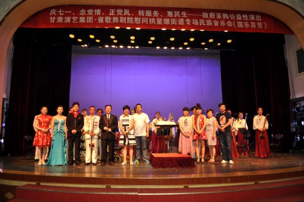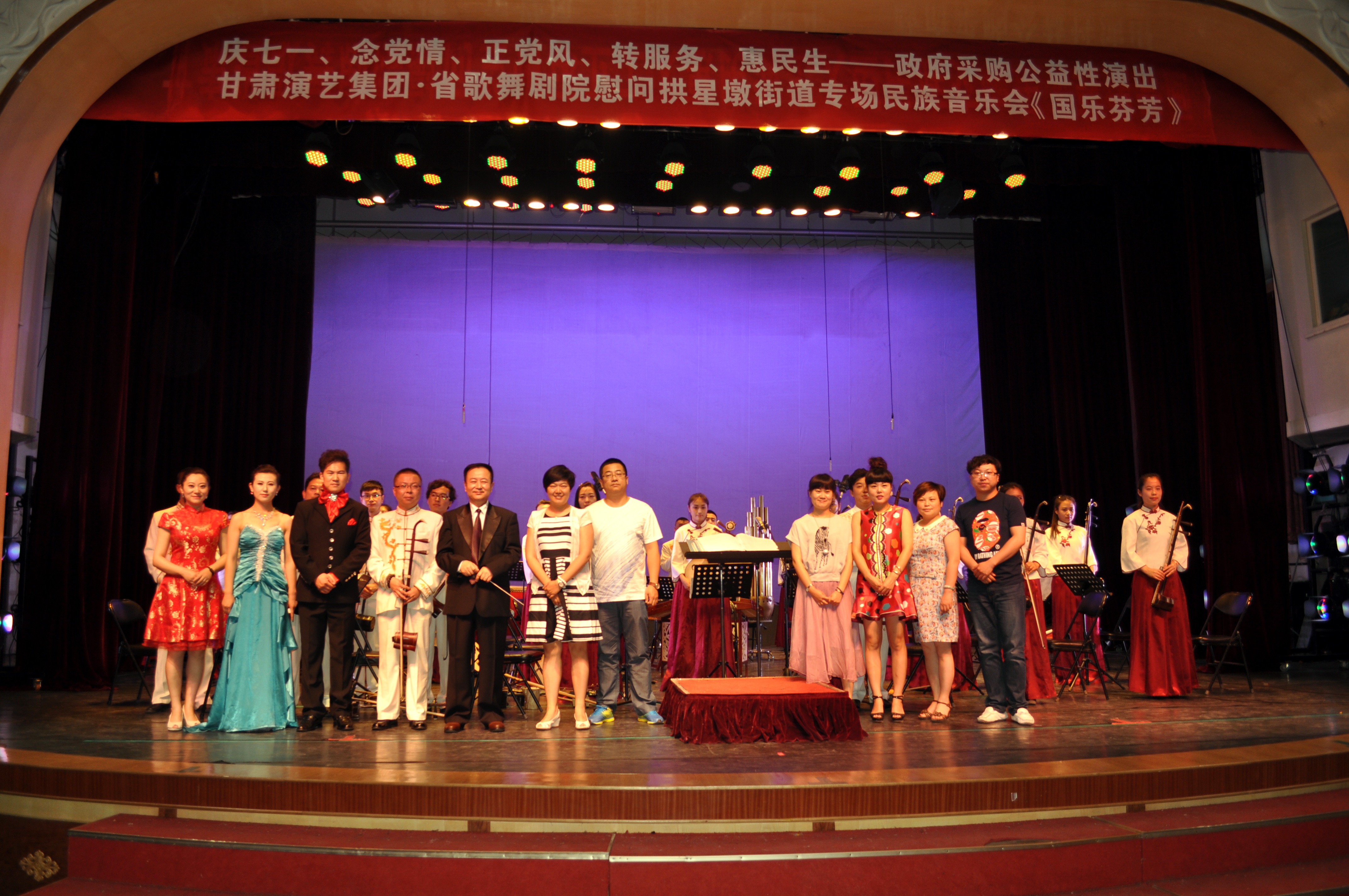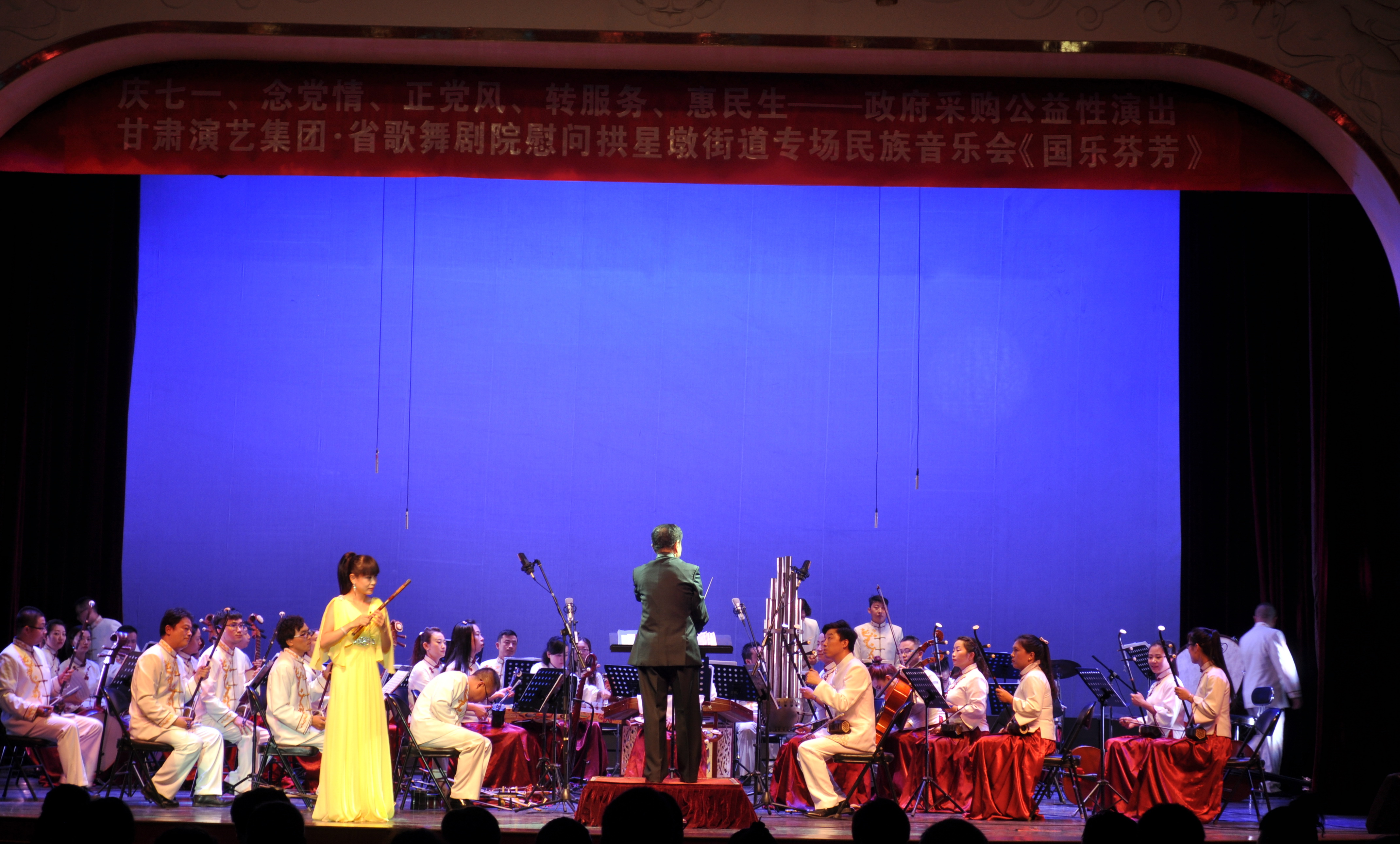 在中國(guó)共產(chǎn)黨成立94周年之際,我院以“慶七一、念黨情、正黨風(fēng)、轉(zhuǎn)服務(wù)、惠民生”為主題,為慰問(wèn)辛勤工作在一線的拱星墩街道社區(qū)員工,甘肅演藝集團(tuán)、甘肅省歌舞劇院于6月29日下午3時(shí),在院花雨小劇場(chǎng),成功舉辦了政府采購(gòu)項(xiàng)目——大型民族音樂(lè)會(huì)《國(guó)樂(lè)芬芳》專(zhuān)場(chǎng)惠民演出。