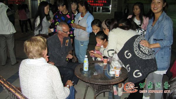 當(dāng)晚,學(xué)生們早早的來到了敦煌大劇院,有秩序的排隊(duì)入場,認(rèn)真的觀看了精彩的演出,還與外國游客交流觀看感、跟演員合影留念。讓他們度過了一個(gè)非常有意義的中秋節(jié)。