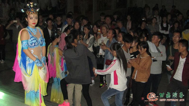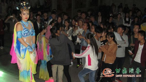 西北師范大學(xué)敦煌學(xué)院成立于2014年,學(xué)院開設(shè)美術(shù)學(xué)、舞蹈表演、動(dòng)畫共3個(gè)本科專業(yè)。學(xué)生都來自全國各地,由于中秋節(jié)假期短,學(xué)生們都不能回家過節(jié)。甘肅省雜技團(tuán)特意邀請敦煌學(xué)院師生觀看《敦煌神女》演出。