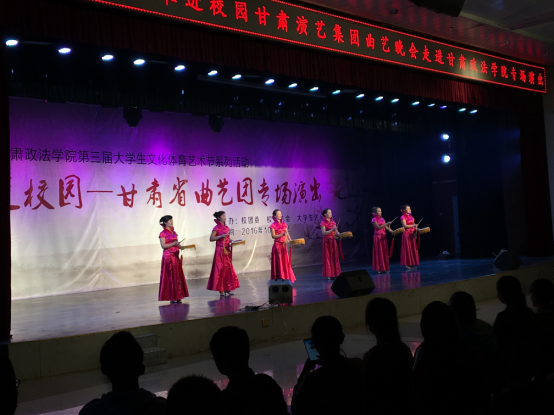 為貫徹落實(shí)甘肅演藝集團(tuán)“高雅藝術(shù)進(jìn)校園”活動(dòng),加強(qiáng)學(xué)生的課外文化活動(dòng),陶冶學(xué)生的情操,弘揚(yáng)甘肅省曲藝文化。甘肅省曲藝團(tuán)于2016年10月19日晚在甘肅政法學(xué)院舉行了曲藝晚會(huì)專場(chǎng)演出。