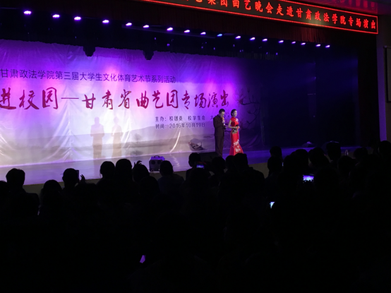為貫徹落實甘肅演藝集團“高雅藝術進校園”活動,加強學生的課外文化活動,陶冶學生的情操,弘揚甘肅省曲藝文化。甘肅省曲藝團于2016年10月19日晚在甘肅政法學院舉行了曲藝晚會專場演出。