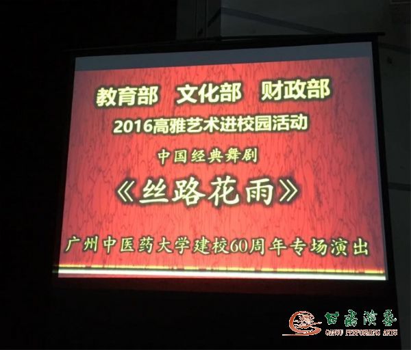 在多彩福建5所高校極致綻放、留下無盡揮之不去的難忘瞬間之后,來自甘肅省歌舞劇院的中國經(jīng)典舞劇《絲路花雨》,又宛若一只美麗的蝴蝶,于11月14日晚7時,在廣州中醫(yī)藥大學60周年校慶的舞臺傾城一舞,成為對這座有著悠久歷史和豐厚文化積淀的知名大學60歲華誕最具詩意內(nèi)涵的華彩祝福。