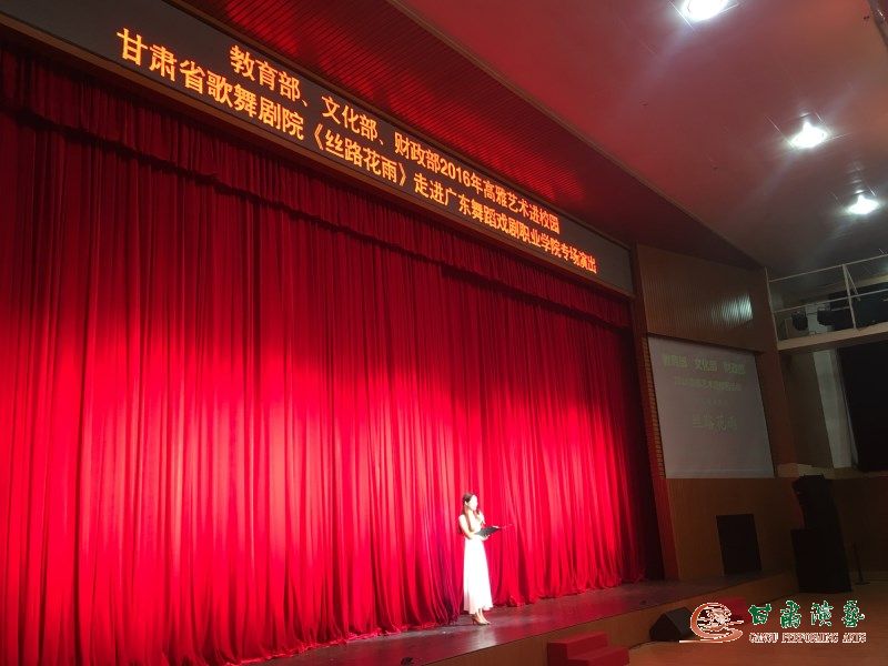 鑒于廣東舞蹈戲劇職業(yè)學(xué)院藝術(shù)類院校的屬性,《絲路花雨》在該校的盛大演出,已不僅僅是一場(chǎng)單純意義上的舞劇演出,更重要的是,該校廣大師生們能從該劇中汲取到良多在平時(shí)課堂教學(xué)中所無法獲取的珍貴藝術(shù)滋養(yǎng),有助于他們?nèi)蘸蟾玫亻_展教、學(xué)藝術(shù)活動(dòng)。對(duì)此,該校廣大師生們甚是開心,紛紛稱:觀此《絲路花雨》,不僅體驗(yàn)了快樂的藝術(shù)享受,而且等于聽取了一堂彌足珍貴的專業(yè)精品科目,深感榮幸,真希望可以有機(jī)會(huì)再次一睹經(jīng)典的美麗容顏?。▓D文由甘肅省歌舞劇院提供)
