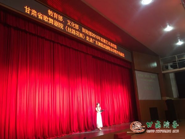 以別樣曼妙的舞姿輕輕拂去悠悠歲月蒙在千年敦煌的那層神秘面紗,讓久遠(yuǎn)絲路之上那段感人至深的真情故事穿越時(shí)空,在世界的目光中再度壯美綻放……近期,來自甘肅省歌舞劇院的世紀(jì)經(jīng)典舞劇《絲路花雨》,在由國(guó)家文化部、財(cái)政部及教育部主辦的“2016高雅藝術(shù)進(jìn)校園”高校巡演活動(dòng)中,極其華彩地完成繼福建全站、廣東站前三場(chǎng)演出任務(wù)后,又于11月18日晚,在廣州市廣東舞蹈戲劇職業(yè)學(xué)院翩然一舞,將無盡驚艷與震撼、敬仰與眷戀永遠(yuǎn)清晰地鐫刻在了該校數(shù)千名師生記憶的天空,再度續(xù)寫了甘肅省歌舞劇院及我國(guó)舞劇藝術(shù)的全新輝煌。