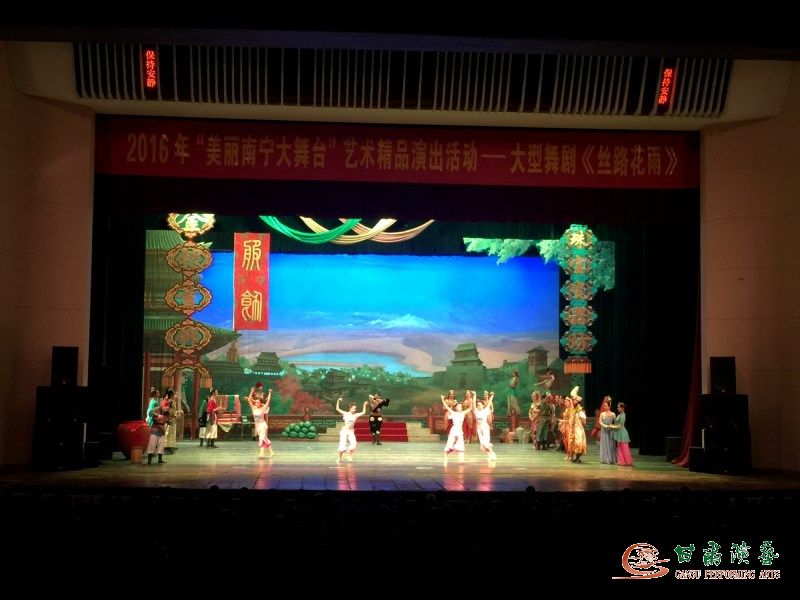 據(jù)悉,由南寧市委宣傳部、南寧市文化新聞出版廣電局主辦的“美麗南寧大舞臺”作為南寧市文化惠民的一大全新品牌,在過去的數(shù)月時間內(nèi),已經(jīng)連續(xù)推出了各地多場精彩紛呈的文藝精品,深受廣大市民歡迎與贊譽(yù),而完美復(fù)活了千年敦煌壁畫的中國舞劇巔峰之作《絲路花雨》的絕艷登場,無疑成為該項(xiàng)演出活動中最值得期待和欣賞的文化盛事。6日晚,來自四面八方的觀眾們幾乎將演出劇院的過道也圍得水泄不通,一縷縷對經(jīng)典舞劇的渴望與艷羨均化作無以言表的由衷贊美伴隨《絲路花雨》全劇始末,整個演出現(xiàn)場,臺下激情洋溢的臉龐、臺上淋漓一舞的身姿,在琉璃如畫的燈光下相映滋情,定格成一幅幅溫馨秀麗的感人畫面。