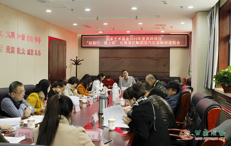 為落實(shí)國家“一帶一路”戰(zhàn)略暢想,促進(jìn)甘肅文化走出去,增加省直文藝院團(tuán)資金來源渠道。為我省華夏文明傳承創(chuàng)新區(qū)建設(shè)、文化大省建設(shè)、戲劇大省建設(shè)做出更大的努力。3月4日,甘肅演藝集團(tuán)在集團(tuán)2樓會議室召開了國家藝術(shù)基金2015年度資助項(xiàng)目“絲路行·隴上韻”國內(nèi)巡演新聞通報(bào)會。會議由集團(tuán)總經(jīng)理張明主持,集團(tuán)演藝部、網(wǎng)絡(luò)信息中心、財(cái)務(wù)室、省歌舞劇院、省話劇院、省雜技團(tuán)、黃河劇院、省歌劇院、省隴劇院的相關(guān)同志以及包括省電視臺、人民網(wǎng)、甘肅日報(bào)社、蘭州晨報(bào)、蘭州晚報(bào)、西部商報(bào)等媒體記者在內(nèi)的30余人參加了會議。