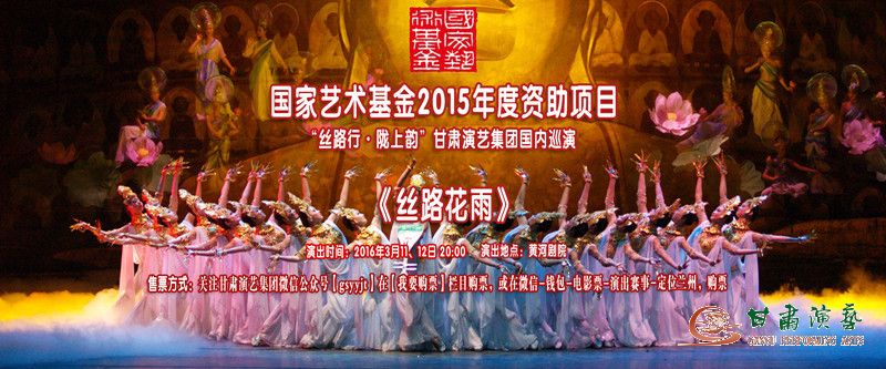 購票方式:1.登陸甘肅演藝網(wǎng),點(diǎn)擊“演出預(yù)告”或“網(wǎng)上訂票”,查找《絲路花雨》;