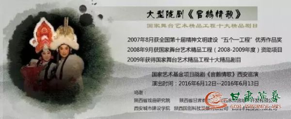 《官鵝情歌》是隴劇入選首批國家非物質(zhì)文化遺產(chǎn)名錄后創(chuàng)作的一部優(yōu)秀劇目,由中國戲劇梅花獎(jiǎng)獲得者雷通霞、邊肖領(lǐng)銜主演,首演以來已經(jīng)演出數(shù)百場,“五個(gè)一工程”優(yōu)秀戲劇作品、國家舞臺藝術(shù)精品工程十大精品劇目,被譽(yù)為“中國西部的《羅密歐與朱麗葉》”。