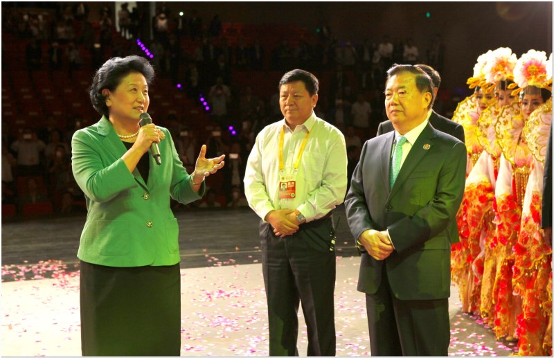 9月19日、20日20:00,中國大型經(jīng)典舞劇《絲路花雨》再次次在敦煌大劇院演出,國家副總理劉延東在甘肅省委書記王三運的陪同下觀看了2016版《絲路花雨》 并給于了高度評價,1000多名觀眾觀看了演出,大家群情激奮,熱情高漲,場內(nèi)掌聲雷動,觀眾起立歡呼。(圖文由省歌舞劇院提供)