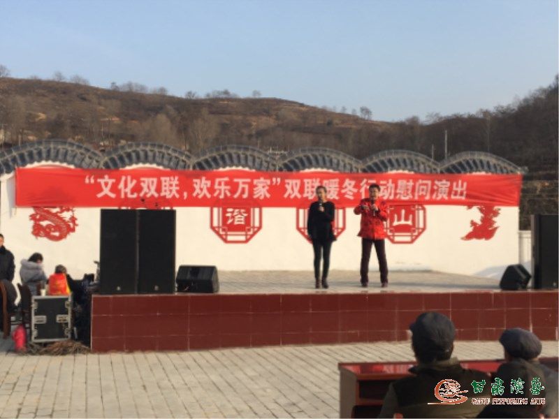 為貫徹省委雙聯(lián)工作要求,落實(shí)黨的文化惠民政策,營(yíng)造扶貧攻堅(jiān)的文化氛圍,2017年1月16日至17日甘肅省曲藝團(tuán)的演職人員們不畏嚴(yán)寒和風(fēng)雪,在山門鎮(zhèn)南山村和玄頭村開展了“文化雙聯(lián)歡樂萬(wàn)家”雙聯(lián)暖冬慰問演出活動(dòng)。