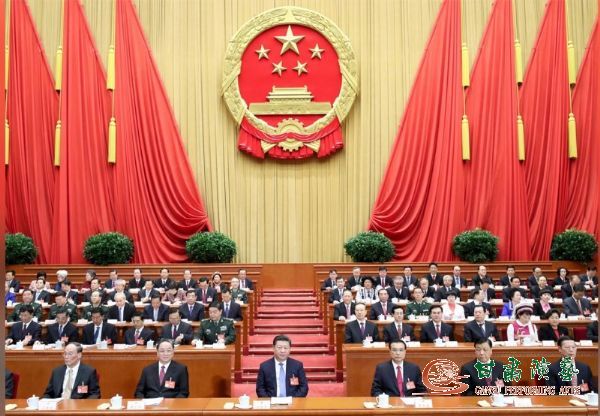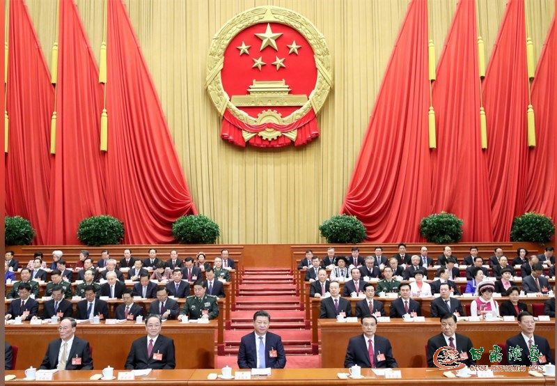 在主席臺前排就座的大會主席團(tuán)常務(wù)委員會成員有習(xí)近平、李克強、張德江、俞正聲、劉云山、王岐山、張高麗、馬凱、王滬寧、劉延?xùn)|、劉奇葆、許其亮、孫春蘭、李建國、李源潮、汪洋、張春賢、范長龍、孟建柱、趙樂際、胡春華、栗戰(zhàn)書、郭金龍、韓正、江澤民、胡錦濤、李鵬、朱?基、李瑞環(huán)、吳邦國、溫家寶、賈慶林、宋平、李嵐清、曾慶紅、吳官正、李長春、賀國強、杜青林、趙洪祝、楊晶。