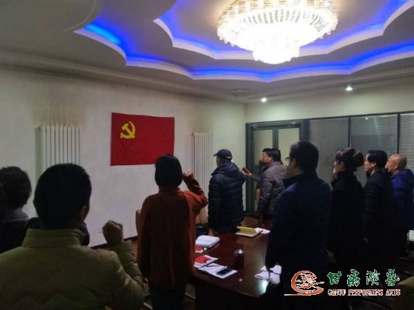 會議一開始全體黨員干部在馬臨軍同志的帶領(lǐng)下面向黨旗,重溫了入黨誓詞,并共同學(xué)習(xí)了《黨章》總綱部分和習(xí)近平總書記在黨的十九大上的報告。
