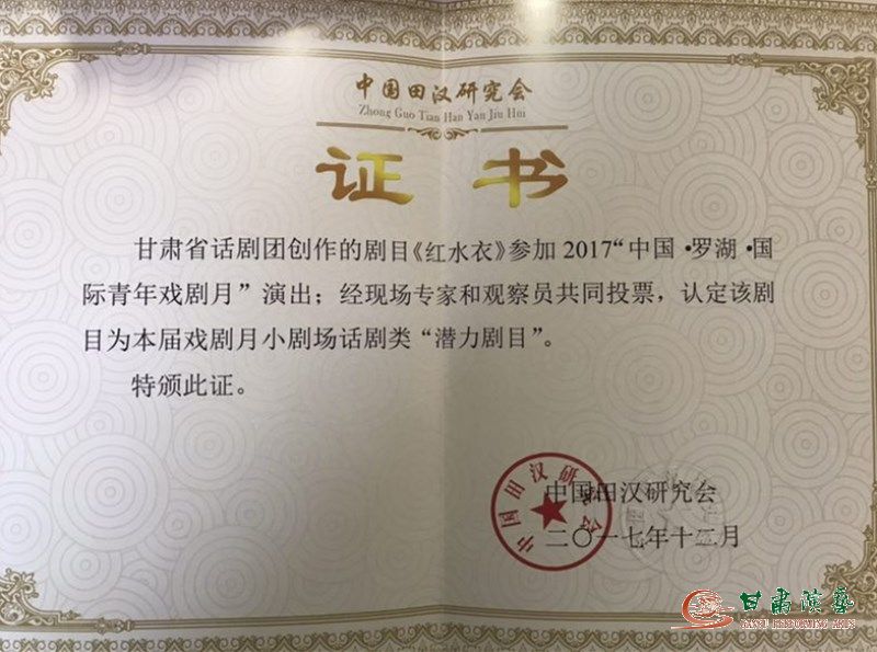 由北京東城區(qū)群藝館組織,為“紀念中國話劇誕辰110周年·戲劇東城10周年全國話劇優(yōu)秀新劇目展演季”,2017年12月19日、20日甘肅省話劇院話劇《紅水衣》在北京風尚劇場演出,演出獲得極高的評價,很多觀眾在演出結(jié)束后紛紛上臺與演員交流!就在北京演出的同時,甘肅省話劇院又接到深圳“中國·羅湖·國際青年戲劇月”的通知,話劇《紅水衣》經(jīng)現(xiàn)場專家和觀察員共同投票,認定該劇目為本屆戲劇月小劇場話劇類“潛力劇目”,同時該劇編劇王元平、主演謝楊一偉分別榮獲了戲劇月優(yōu)秀編劇獎和優(yōu)秀演員獎。(圖文由甘肅省話劇院提供)