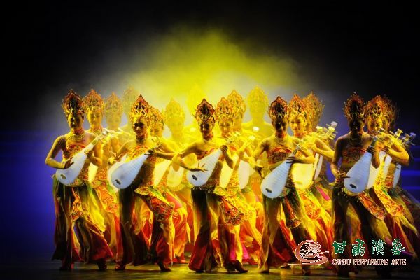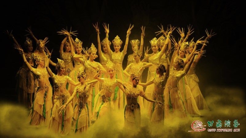 為配合甘肅臨夏“第二屆牡丹節(jié)”活動,甘肅省歌劇院在臨夏大劇院上演大型樂舞《敦煌韻》, 2017年5月9日、10日晚八點,伴著恢弘悠揚的樂聲、蹁躚飄逸的舞姿,原創(chuàng)大型樂舞《敦煌韻》首次與臨夏觀眾見面。