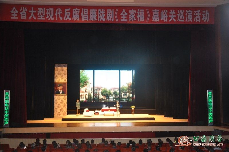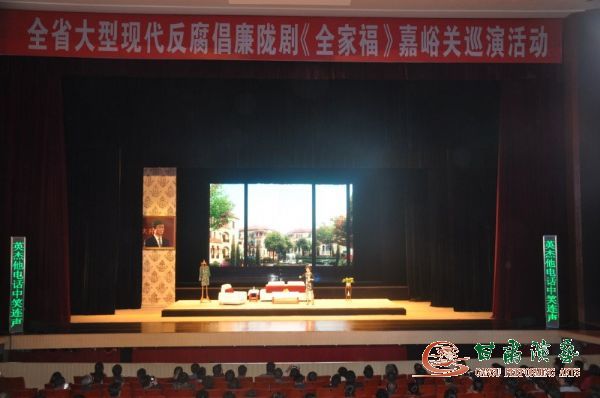 金秋九月,嘉市劇院內(nèi)外,燈火輝煌,座無虛席,人頭攢動,掌聲雷動。甘肅省隴劇院受嘉峪關(guān)市委市政府邀請,于9月26日在嘉峪關(guān)大劇院為嘉峪關(guān)市委、市政府及所屬各機(jī)關(guān)單位等一千余名各級黨員、干部演出了大型反腐倡廉現(xiàn)代隴劇《全家?!?。此次警示教育演出活動是在全國人大代表、國家一級演員、梅花獎得主、省隴劇院副院長雷通霞同志帶領(lǐng)下,由國家一級演員、梅花獎得主佟紅梅、竇鳳霞以及優(yōu)秀青年演員邵炳德、趙丹、張保利、常小軍、樊麗等一大批中青年業(yè)務(wù)骨干為代表的強(qiáng)大陣容演出。各級黨員、干部在觀看席上鴉雀無聲,受到了極大地觸動和警醒。嘉峪關(guān)市委、市政府、人大、政協(xié)和有關(guān)方面主要領(lǐng)導(dǎo)同志觀看了警示教育演出,并給予了充分肯定和高度評價。