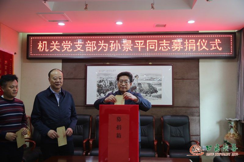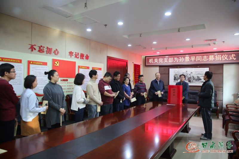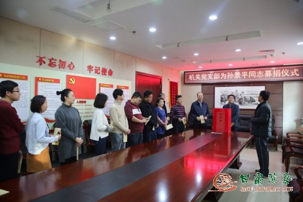甘肅省話劇院退休職工孫景平同志因患尿毒癥,嚴(yán)重腎衰竭,每周至少需要透析3次,每月治療費(fèi)除醫(yī)保報(bào)銷外還需3000元左右,隨著病情加重,醫(yī)療費(fèi)逐步加大,孫景平個(gè)人已經(jīng)無(wú)力承擔(dān)。甘肅省話劇院黨總支積極組織本院黨員干部和職工募捐,但仍是杯水車薪。為此,甘肅省話劇院黨總支向集團(tuán)所屬各院團(tuán)發(fā)起了募捐倡議。11月14日,集團(tuán)黨委書記、董事長(zhǎng)陳其銀同志接到募捐倡議后,立即作出批示,要求相關(guān)部門做好募捐工作,并以個(gè)人名義捐款1000元。集團(tuán)黨委委員、副總經(jīng)理王衛(wèi)平、龍富國(guó)同志也立即響應(yīng),捐款1000元,以實(shí)際行動(dòng)向廣大黨員干部和職工發(fā)出了倡議。為積極響應(yīng)集團(tuán)領(lǐng)導(dǎo)的倡議,踐行學(xué)習(xí)《榜樣3》英模精神,將機(jī)關(guān)黨支部學(xué)習(xí)《英雄3》活動(dòng)引向深入,集團(tuán)機(jī)關(guān)黨支部組織了這次募捐活動(dòng)?;顒?dòng)得到了廣大黨員干部和職工的熱烈響應(yīng),在積極捐款的同時(shí)還通過電話、微信等方式向?qū)O景平同志表示慰問。共募集善款7150元人民幣,將以支部名義交付孫景平同志。(機(jī)關(guān)黨支部供稿、網(wǎng)絡(luò)信息中心供圖)