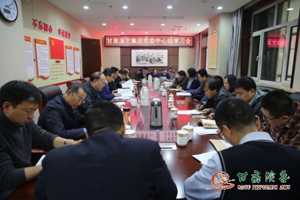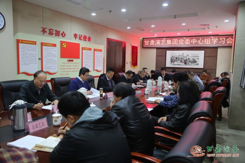2018年11月27日,甘肅演藝集團(tuán)召開(kāi)黨委中心組第八次學(xué)習(xí)會(huì),會(huì)議學(xué)習(xí)了中共中央印發(fā)《中國(guó)共產(chǎn)黨支部工作條例(試行)》、傳達(dá)了“林鐸、陳青同志在全省宣傳思想工作會(huì)議上的講話”精神,對(duì)黨支部建設(shè)標(biāo)準(zhǔn)化工作推進(jìn)方案檢查督查、在集團(tuán)系統(tǒng)開(kāi)展“大學(xué)習(xí)、大調(diào)研、大研討”活動(dòng)等工作進(jìn)行了安排。