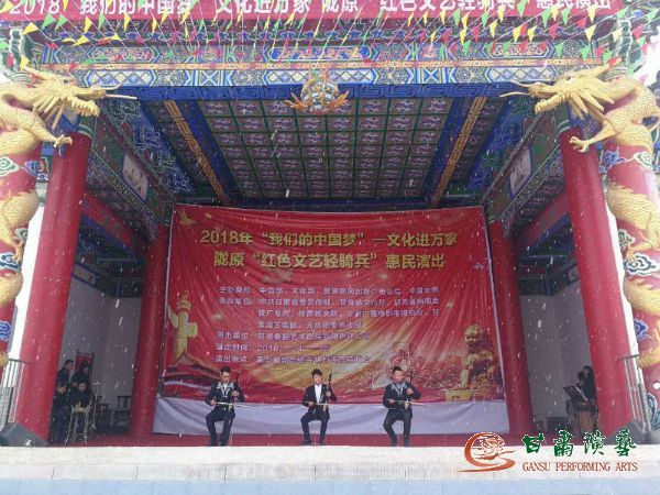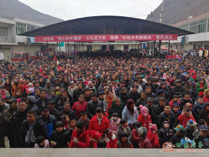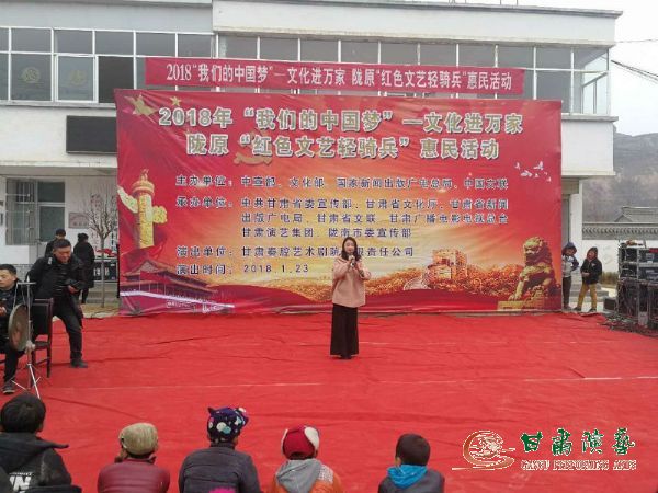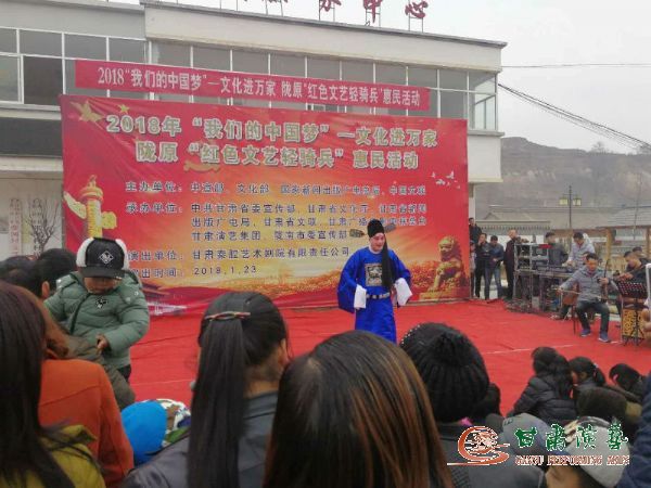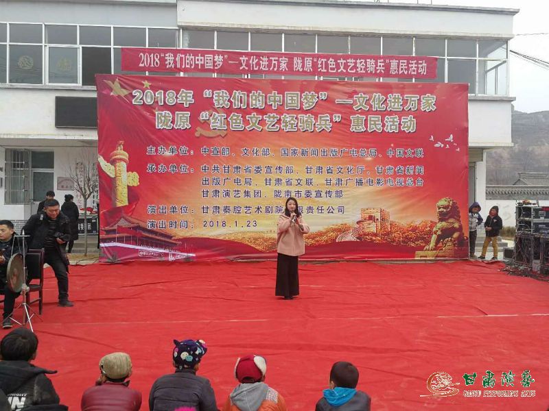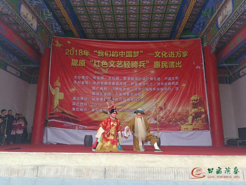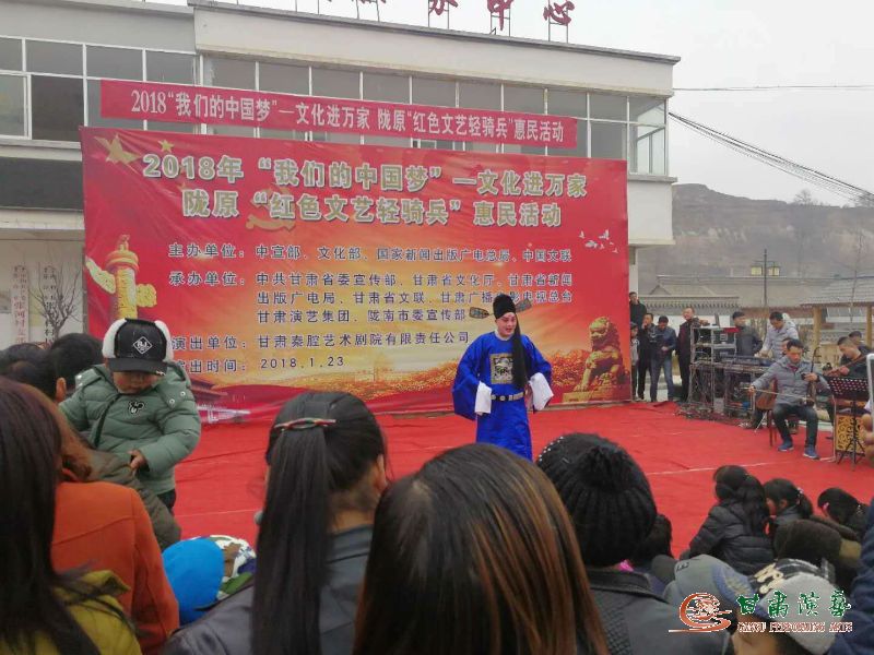 為深入學(xué)習(xí)貫徹黨的十九大精神和習(xí)近平總書記對(duì)烏蘭牧騎“紅色文藝輕騎兵”重要指示精神,落實(shí)中宣傳部關(guān)于2018年元旦春節(jié)期間廣泛開展“我們的中國(guó)夢(mèng)”——文化進(jìn)萬(wàn)家活動(dòng)的要求,2018年1月22日至26日,甘肅秦腔藝術(shù)劇院的50余名演職人員冒著凜冽的寒風(fēng)和大雪,赴西和縣蘇合鄉(xiāng)張家河村、石峽鎮(zhèn)石峽村及秦安縣郭嘉鎮(zhèn)寺開展“我們的中國(guó)夢(mèng)”文化進(jìn)萬(wàn)家暨隴原“紅色文藝輕騎兵”惠民演出活動(dòng)。