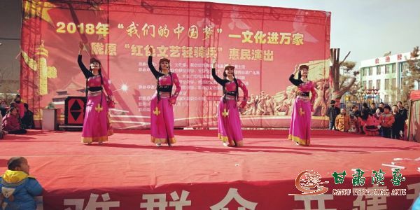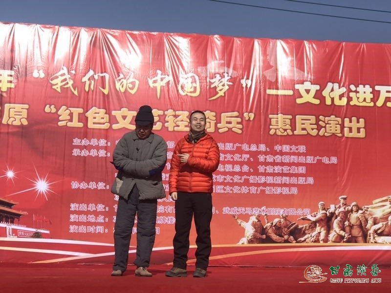 甘肅省話劇院按照省委宣傳部、省文化廳、省演藝集團(tuán)部署的2018年“我們的中國(guó)夢(mèng)”——文化進(jìn)萬(wàn)家暨隴原“紅色文藝輕騎兵”文化惠民演出活動(dòng)安排,積極響應(yīng)中宣部印發(fā)《學(xué)習(xí)貫徹習(xí)近平總書記重要指示精神做新時(shí)代“紅色文藝輕騎兵”》的通知,于2018年2月4日來(lái)到了美麗的天祝縣石門鎮(zhèn)馬營(yíng)坡村,拉開了6場(chǎng)活動(dòng)首場(chǎng)演出的序幕。