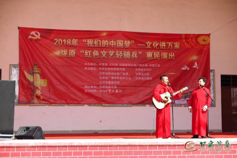 為了在春節(jié)期間將最精彩的節(jié)目、最真誠的問候繼續(xù)送到各地父老鄉(xiāng)親們的身邊,甘肅省曲藝團(tuán)2018年“我們的中國夢”——文化進(jìn)萬家暨隴原“紅色文藝輕騎兵”惠民演出任務(wù)于正月初十繼續(xù)進(jìn)行,本次演出在榆中縣三角城鄉(xiāng)高墩營村開演。