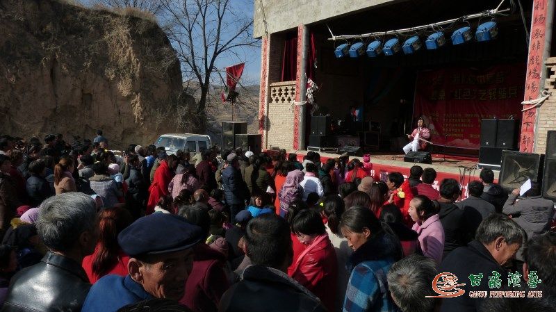 結束了蘇峽村的演出,在匆匆吃過簡單午餐后,演出小分隊全體演職人員又將整整一上午勞動留下的疲憊無言忘卻,頂著雖是正月初春、但卻已相當火辣的太陽,向著道路更加坎坷難行的景家村出發(fā)。一路顛簸,趕至景家村鄉(xiāng)村舞臺時,恰逢當?shù)貜R會唱大戲的間隙,舞臺與臺前場地空間本就十分有限,加之該村與臨近十里八村前來觀看演出的群眾數(shù)量急劇增多,給演出小分隊音響設備安裝調試和演出均提出了嚴峻考驗,但演出小分隊全體演職人員始終心系對演出質量的不茍追求、對廣大老百姓認真負責的態(tài)度,最終尤為出色地完成了演出任務。臺前院落中、臺旁山坡土崖邊,里三層外三層興致勃勃的老百姓們,紛紛將由心而發(fā)的掌聲、喝彩聲一次次送給臺上傾心表演的小分隊成員們,演出現(xiàn)場氣氛熱烈至極,盡情歡騰的舞姿、快樂流淌的歌聲,還有舒心舒扉的民族器樂旋律,與廣大老百姓的歡顏笑語融為一體,勾勒出景家村這個美麗山鄉(xiāng)新春伊始最為激動人心的文化盛景!