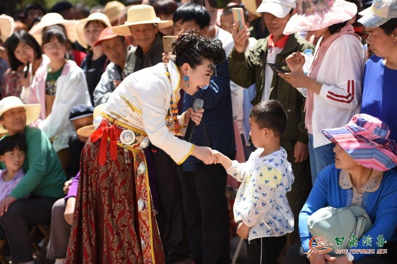 在演出結(jié)束以后,演員幫助舞美人員進(jìn)行簡(jiǎn)單的卸臺(tái)工作后,回到酒店已經(jīng)到深夜,到了第二天一早6:30分,又整合隊(duì)伍,出發(fā)到臨洮縣玉井鎮(zhèn)進(jìn)行“隴原紅色文藝輕騎兵”的演出,演員不辭辛苦勞頓在露天化妝、換服裝,沒(méi)有椅子就坐在田間地頭上,沒(méi)有吃飯的地方就蹲在地上吃,沒(méi)有一個(gè)演員喊苦喊累的。用我們紅色文藝輕騎兵的精神把真誠(chéng)的歌聲和優(yōu)美的舞姿送到老百姓身邊,雖然汗水已經(jīng)滲透了演員的演出服,臉也曬的通紅,但是大家看到觀(guān)眾期盼的眼神和賣(mài)力的鼓掌,都覺(jué)得做為一個(gè)文藝工作者就是要在這里演出,也只有在這里演出,心里才覺(jué)得更踏實(shí),更接地氣?。▓D文由甘肅省歌劇院提供)