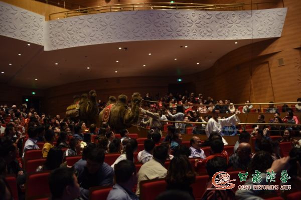演出當(dāng)晚,省歌劇院演員在舞臺(tái)上的精彩表演贏得了臺(tái)下觀(guān)眾的熱烈掌聲,美輪美奐的燈光、舞美再現(xiàn)了敦煌盛世的盛大繁華場(chǎng)景,演出十分精彩,現(xiàn)場(chǎng)觀(guān)眾反響熱烈,掌聲陣陣不絕于耳,觀(guān)眾們被《敦煌韻》華麗的服飾、絢麗的燈光、演員們精彩的表演深深折服,演出結(jié)束后久久不愿離去,臺(tái)下掌聲雷動(dòng), 演員經(jīng)過(guò)數(shù)次謝幕觀(guān)眾才依依不舍的離開(kāi)了劇場(chǎng),這充分肯定了《敦煌韻》確實(shí)是觀(guān)眾喜歡看的節(jié)目,同樣,我們也能為臨夏的觀(guān)眾送去這樣的演出深深的感到高興。