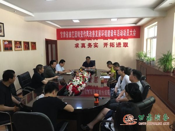 會議上傳達(dá)了甘肅省委、省政府印發(fā)的關(guān)于《甘肅省深入開展“轉(zhuǎn)變作風(fēng)改善發(fā)展環(huán)境建設(shè)年”活動實施方案》的有關(guān)精神,同時學(xué)習(xí)了集團(tuán)黨委《甘肅演藝集團(tuán)黨委深入開展“轉(zhuǎn)變作風(fēng)改善發(fā)展環(huán)境建設(shè)年”活動工作方案》的文件內(nèi)容。省曲藝團(tuán)積極響應(yīng)上級黨委要求,及時召開“轉(zhuǎn)變作風(fēng)改善環(huán)境建設(shè)年”活動啟動會議,安排部署此項活動的各項工作任務(wù),成立了作風(fēng)建設(shè)年活動領(lǐng)導(dǎo)小組。
