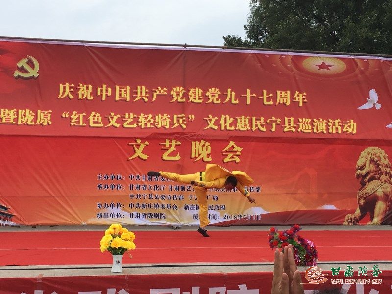 7月1日,甘肅省隴劇院“紅色文藝輕騎兵”演職人員在革命老區(qū)慶陽寧縣中村鎮(zhèn)以及新莊鎮(zhèn)用文藝演出的形式為黨慶生,向黨獻禮!