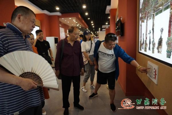 下午,采風(fēng)隊伍又趕往環(huán)縣道情皮影藝術(shù)館。清同治年間,環(huán)縣皮影藝人解長春將隴東道情用于皮影藝術(shù)表演,并汲取了慶陽民間小曲和民歌的特點,將主奏樂器二股弦改為四股弦,對唱腔也作了大膽改革,創(chuàng)造了一些新板路和唱法,使音樂腔調(diào)突出了地方色彩,進一步完善、發(fā)展了隴東道情,創(chuàng)造出了多種不同的表演風(fēng)格和唱腔流派?!肚橄当P龍嶺》為了更接地氣的表現(xiàn)出慶陽一帶的文化,所以劇中有不少“隴東道情”。