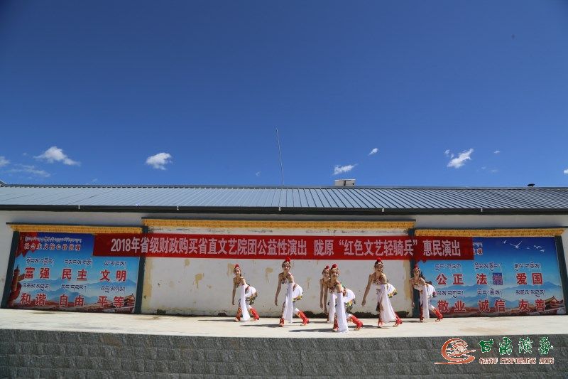 天藍藍,草青青,七月的甘南州夏河縣,一派詩情畫意。24日下午,素以中國經(jīng)典舞劇《絲路花雨》聞名于世的甘肅省歌舞劇院“紅色文藝輕騎兵”演出小分隊在該院綜合辦公室主任王華帶領(lǐng)下,不顧長途顛簸的疲憊與(因時間緊迫,顧不上吃飯而導(dǎo)致的)饑腸轆轆,頭頂烈日,于該縣阿木去乎鎮(zhèn)文化廣場,將一場潛心編排的精品文藝節(jié)目熱情呈獻給了當(dāng)?shù)啬矫鴣淼膹V大老百姓,以精湛演技贏得高度贊譽,圓滿完成了該院本年度省級財政購買省直文藝院團公益性演出暨隴原“紅色文藝輕騎兵”惠民演出活動甘南州站的喜悅開幕。