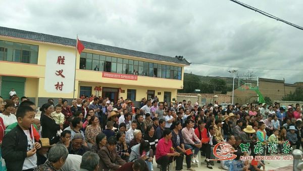 2018年8月2日下午,通渭縣勝義村中心廣場(chǎng),在紅軍長(zhǎng)征紀(jì)念雕塑前,在紅軍長(zhǎng)征時(shí)毛澤東等領(lǐng)導(dǎo)人開(kāi)會(huì)的老核桃樹下,彩旗招展,人頭攢動(dòng),通渭縣電視臺(tái)的錄制人員在取景框中看到人們滿臉興奮,精心布置的舞臺(tái)上甘肅秦腔藝術(shù)劇院正在舉辦隴原“紅色文藝輕騎兵”惠民演出活動(dòng)。