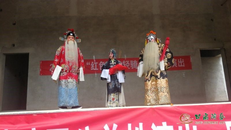 在演出中,甘肅秦腔藝術(shù)劇院隴原“紅色文藝輕騎兵”惠民演出活動二分隊的演職人員根據(jù)演出地群眾農(nóng)忙的實際情況,采取靈活方式,把秦腔節(jié)目送到田間地頭和農(nóng)家院落。沒有舞臺就在地頭演,沒有化妝間就在路邊、車?yán)锘瘖y、換衣,高原紫外線強烈,幾天演出下來,演職人員互相開玩笑說都是“非洲人了”。但甘肅秦腔藝術(shù)劇院演職人員克服重重困難,一絲不茍地為各地群眾演出了秦腔優(yōu)秀折子戲、秦腔清唱、器樂獨奏、快板、歌曲、舞蹈等,得到了當(dāng)?shù)馗髯迦罕姷母叨荣澴u和好評。