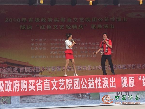 2018年8月18日早,甘肅省曲藝團(tuán)一眾演職人員乘車來(lái)到了武威市華藏寺鎮(zhèn)岔口驛村,準(zhǔn)備進(jìn)行隴原“紅色文藝輕騎兵”公益性惠民演出。