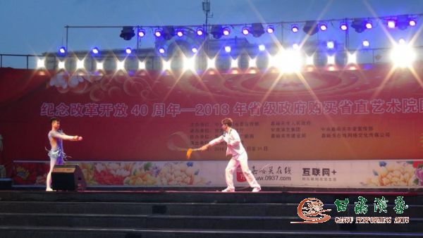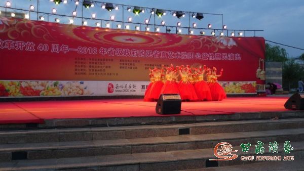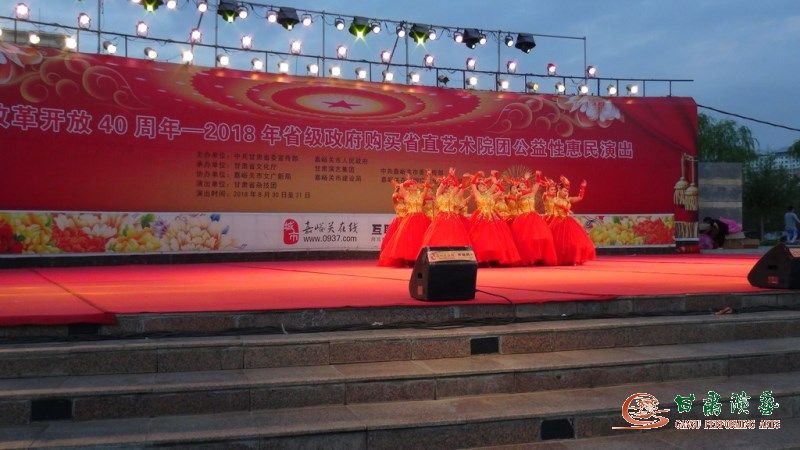 2018年8月30日,由甘肅省委宣傳部、嘉峪關(guān)市人民政府主辦,甘肅省文化廳、甘肅演藝集團(tuán)、嘉峪關(guān)市為宣傳部承辦的“改革開放四十年,2018省級政府購買省直文藝院團(tuán)公益性惠民演出”在嘉峪關(guān)人民廣場隆重開演。
