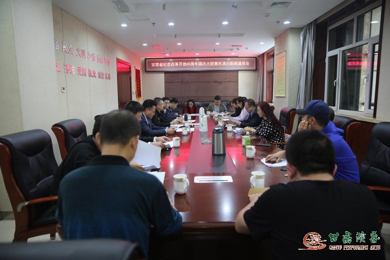 9月21日下午3點,甘肅演藝集團在二樓會議室召開了甘肅省紀念改革開放40周年國慶大型惠民演出新聞通報會。包括甘肅演藝集團原藝術(shù)總監(jiān)胡豫川、副總經(jīng)理龍富國、演藝部部長崔華功、省歌舞劇院黨總支書記楊亦兵、甘肅大劇院副總經(jīng)理張洪田、省話劇院藝術(shù)總監(jiān)張圣海、省隴劇院院長助理王為民、省京劇團辦公室主任尤瑞,甘肅電視臺、甘肅日報、新華網(wǎng)甘肅頻道、中國甘肅網(wǎng)、甘肅經(jīng)濟日報、蘭州日報、蘭州晚報、蘭州晨報、甘肅交通廣播等媒體記者在內(nèi)的30余人參加了此次會議。