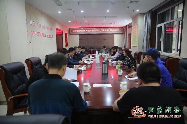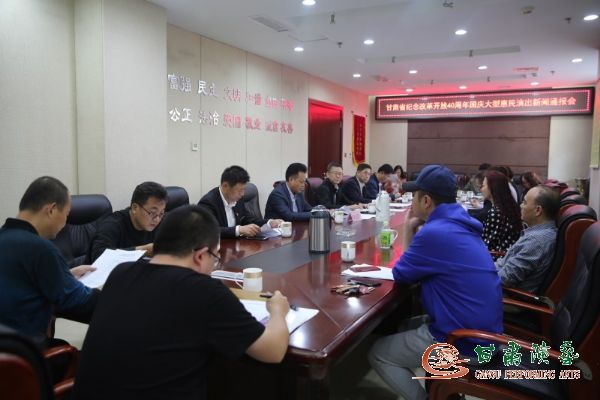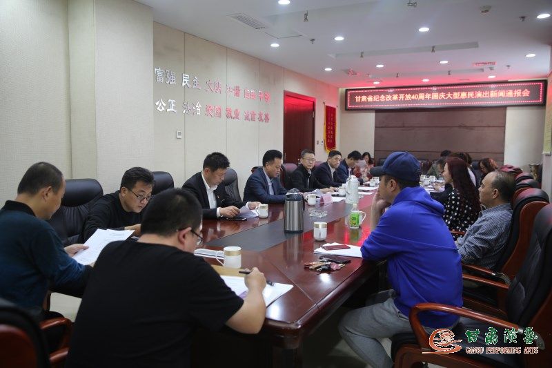 會議由甘肅演藝集團副總經(jīng)理龍富國住持,他指出,今年是中國共產(chǎn)黨帶領(lǐng)全國各族人民堅持改革開放40年,取得舉世矚目偉大成就的一年,也是我省文藝工作者銳意改革、拼搏進取的一年。十月的金城蘭州,金風(fēng)送爽、瓜果飄香,這是收獲的季節(jié),恰逢新中國69周年華誕,在這個美好日子,為了表達甘肅演藝集團全體藝術(shù)工作者的初心和使命,以及與全省人民歡度國慶、同賀改革開放40周年的喜悅之情,在省委、省政府的大力支持下,我們將于9月30日至10月8日在蘭州大劇院舉辦“紀念改革開放40周年國慶大型惠民演出”活動。我們期望通過這次惠民演出活動,使金城蘭州的廣大藝術(shù)愛好者欣賞到高雅的舞臺藝術(shù)精品,享受到豐富的文化藝術(shù)大餐。同時,也通過演出活動,讓廣大市民感受到我國改革開放40年來經(jīng)濟社會發(fā)展帶來的豐碩成果。