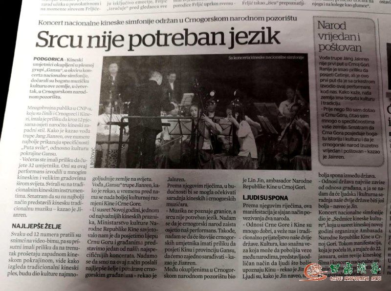 1月21日至24日,由中國文化和旅游部、中國駐保加利亞大使館聯(lián)合主辦,索非亞中國文化中心、甘肅省文化和旅游廳承辦,甘肅省歌舞劇院民族交響樂團呈現(xiàn)的《隴上行》民族交響音樂會,在結(jié)束黑山的“歡樂春節(jié)”演出活動后,又在保加利亞著名港口城市瓦爾納和首都索非亞演出兩場,為保加利亞人民送上了一場與眾不同的音樂盛宴,讓當?shù)赜^眾再一次掀起感受絲路文化和中國民族音樂的熱潮,同時也送上了一份中國春節(jié)的美好祝愿。