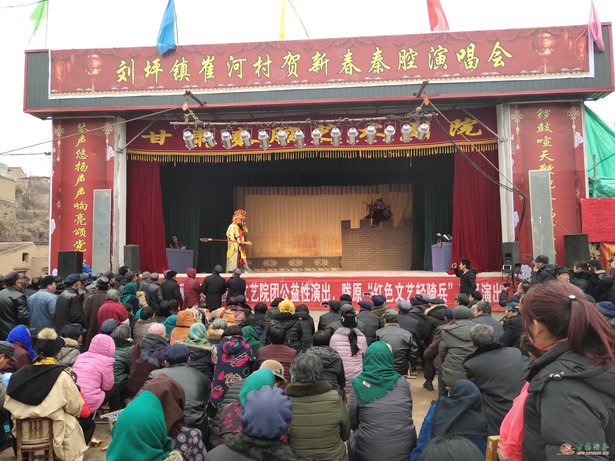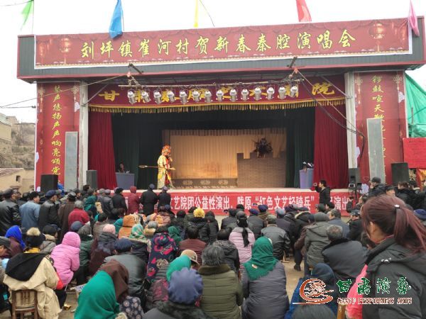 連日來,甘肅秦腔藝術(shù)劇院的演職人員克服連場演出勞累、天氣寒冷、條件艱苦等困難,在完成正月初二以來的多個地點(diǎn)的演出任務(wù)后,于2月22日從甘南臨潭縣古戰(zhàn)村轉(zhuǎn)戰(zhàn)秦安縣崔家河村為當(dāng)?shù)厝罕娧莩觯B續(xù)為當(dāng)?shù)厝罕娧莩?、大型秦腔優(yōu)秀傳統(tǒng)劇目忠保國》、《周仁回府》、《金沙灘》、《火焰駒》、《竇娥冤》、《趙氏孤兒》、《玉堂春》和秦腔經(jīng)典折子戲《梳妝.掛畫》、《花云帶箭》、《殺廟》、《古城會》等。在為期6天12場的演出中,國家一級演員、梅花獎得主蘇鳳麗,國家一級演員賀忠宏、溫彩霞,劇院優(yōu)秀中青年演員陳永勝、郭凱杰、陳金芳、馬永紅、高二強(qiáng)等輪番登臺演出,讓當(dāng)?shù)厝嗣袢罕娫诖汗?jié)期間享受到了一道道秦腔大餐,豐富了當(dāng)?shù)厝嗣袢罕姷木裎幕睢?