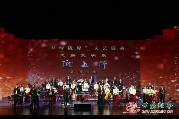 春意漸欲濃,風光無限好。3月8日晚8點,蘭州音樂廳花團錦簇、樂海飄香,由甘肅省委宣傳部、甘肅省文化和旅游廳主辦,甘肅演藝集團承辦,甘肅省歌舞劇院民族交響樂團傾心打造的“春綠隴原”文藝展演之民族交響樂《隴上行》匯報演出在此隆重呈現(xiàn),用五彩斑斕的音符為全省婦女同胞們送上喜慶的“三·八”節(jié)日祝福,也為生機勃勃的美麗隴原再添全新景象。省委常委、常務副省長宋亮,省委常委、組織部部長李元平,省委宣傳部副部長、省文化和旅游廳廳長陳衛(wèi)中,省政府外事辦主任、省港澳辦主任張寶軍,省直機關(guān)工委常務副書記胡秉俊,甘肅演藝集團黨委書記、董事長陳其銀,省委網(wǎng)信辦副主任王國強,省文化和旅游廳副廳長火玉龍、楊建仁,省公安廳副廳長肖春,省文物局局長馬玉萍,省文化和旅游廳巡視員都偉,甘肅演藝集團副總經(jīng)理王衛(wèi)平等領導蒞臨演出現(xiàn)場。省市有關(guān)部門、在蘭部分高校及新聞媒體、企事業(yè)單位和生產(chǎn)一線的婦女同胞與朋友們歡聚一堂,共賞文化盛宴,同享節(jié)日歡樂,并給予演出高度評價。