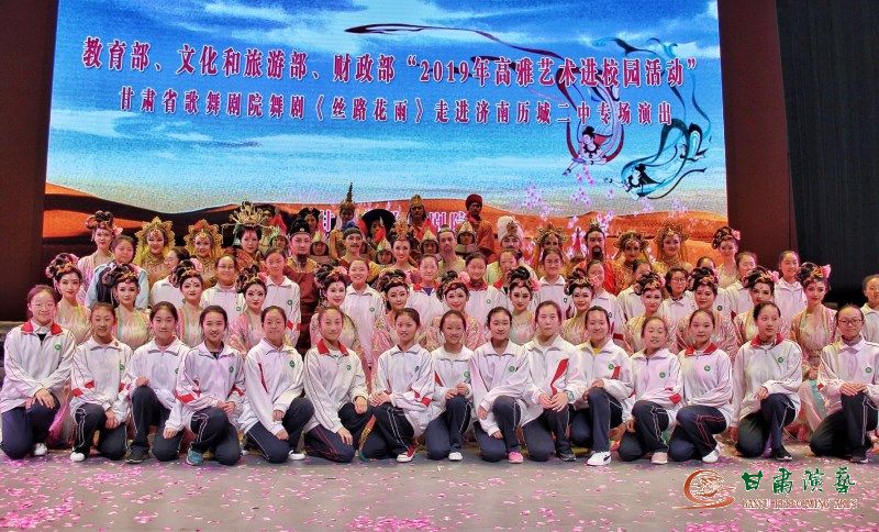 3月28日,甘肅省歌舞劇院攜中國經(jīng)典藝術(shù)之作——舞劇《絲路花雨》在有著六十多年文化積淀的濟(jì)南歷城二中精彩綻放,在收獲現(xiàn)場(chǎng)兩千余名師生發(fā)自內(nèi)心深深贊嘆的同時(shí),又為濟(jì)南站“高雅藝術(shù)進(jìn)校園”巡演添上了濃墨重彩的華美一筆。