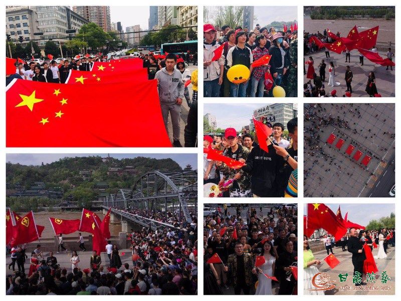 在“五·一”國際勞動節(jié)當(dāng)天,在集團的大力支持下,甘肅省曲藝團在百年中山鐵橋唱響了《我和我的祖國》快閃活動,立刻引來中山橋廣場上游客、大學(xué)生志愿者、蘭州市民的熱情關(guān)注。在演職人員們火熱的表演帶動下,游客市民們搖動手中鮮艷的五星紅旗,同演職人員們一起揮動國旗、團旗高唱“我和我的祖國”,霎時中山橋前紅旗漫卷歌聲飛揚匯聚成了紅色的海洋。