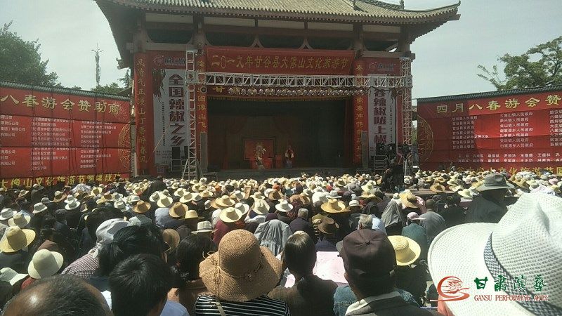 2019年5月9日晚8時30分,甘谷縣大象山,山前廣場上人山人海,異常擁擠,近3萬名從甘谷縣各鄉(xiāng)鎮(zhèn)村組趕來的群眾正在這里入神地欣賞由甘肅秦腔藝術(shù)劇院演出的大型秦腔經(jīng)典劇目《竇娥冤》。