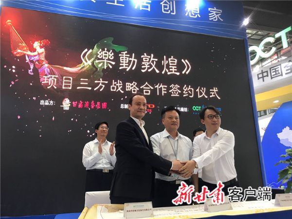 新甘肅客戶端深圳5月18日訊(新甘肅·甘肅日?qǐng)?bào)記者施秀萍)今天上午,大型沉浸式文旅演藝《樂動(dòng)敦煌》項(xiàng)目三方戰(zhàn)略合作簽約儀式在第十五屆深圳文博會(huì)華僑城展廳舉行,一部“活化”呈現(xiàn)敦煌古樂譜、藝術(shù)展現(xiàn)敦煌千年璀璨文化的大型沉浸式旅游演藝作品“呼之欲出”。